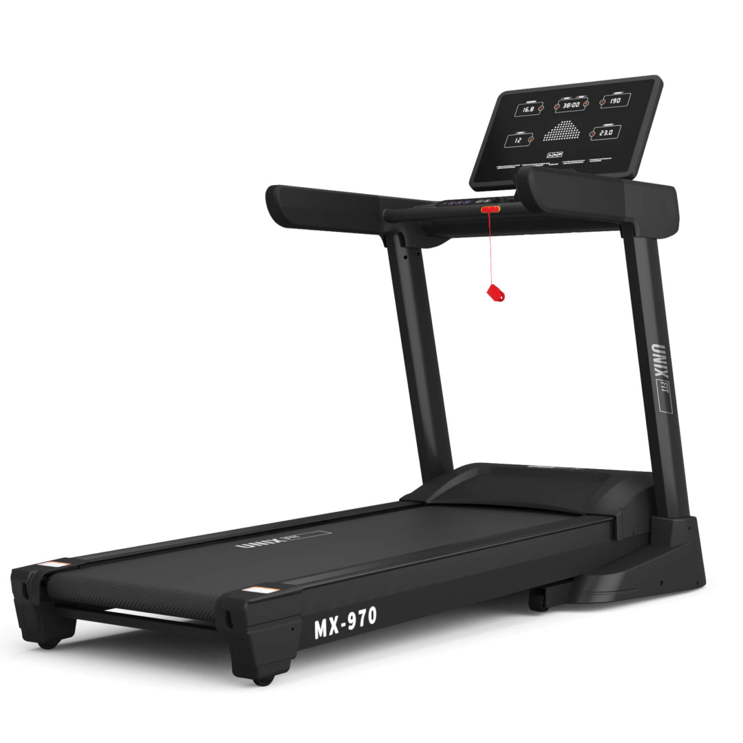 UNIX Fit MX-970 — это инновационная электрическая беговая дорожка премиум-класса с беспроводной зарядкой для дома и для фитнес студий с небольшой проходимостью, созданная специально для тех, кто ценит эффективность тренировок, удобство эксплуатации и современные технологии. Этот тренажёр идеально подойдёт как новичкам, так и опытным спортсменам благодаря своей универсальности и множеству полезных функций.