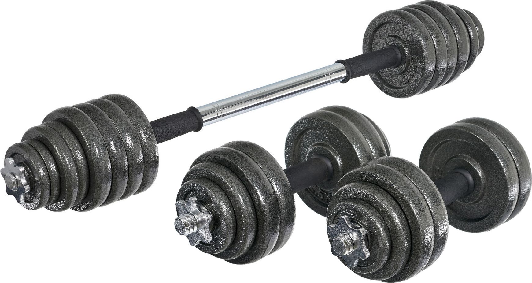 Компактный набор гантелей способен заменить вам небольшой тренажерный зал! В него входит комплект дисков от 1,5 до 2,5 кг, а также грифы для штанги и гантелей - все, что нужно для эффективной тренировки в домашних условиях! Разборные гантели позволяют контролировать нагрузку и изменять ее в соответствии с вашими целями и уровнем физической подготовки. Упражнения с гантелями помогают проработать бицепсы, трицепсы, а также грудные и дельтовидные мышцы.