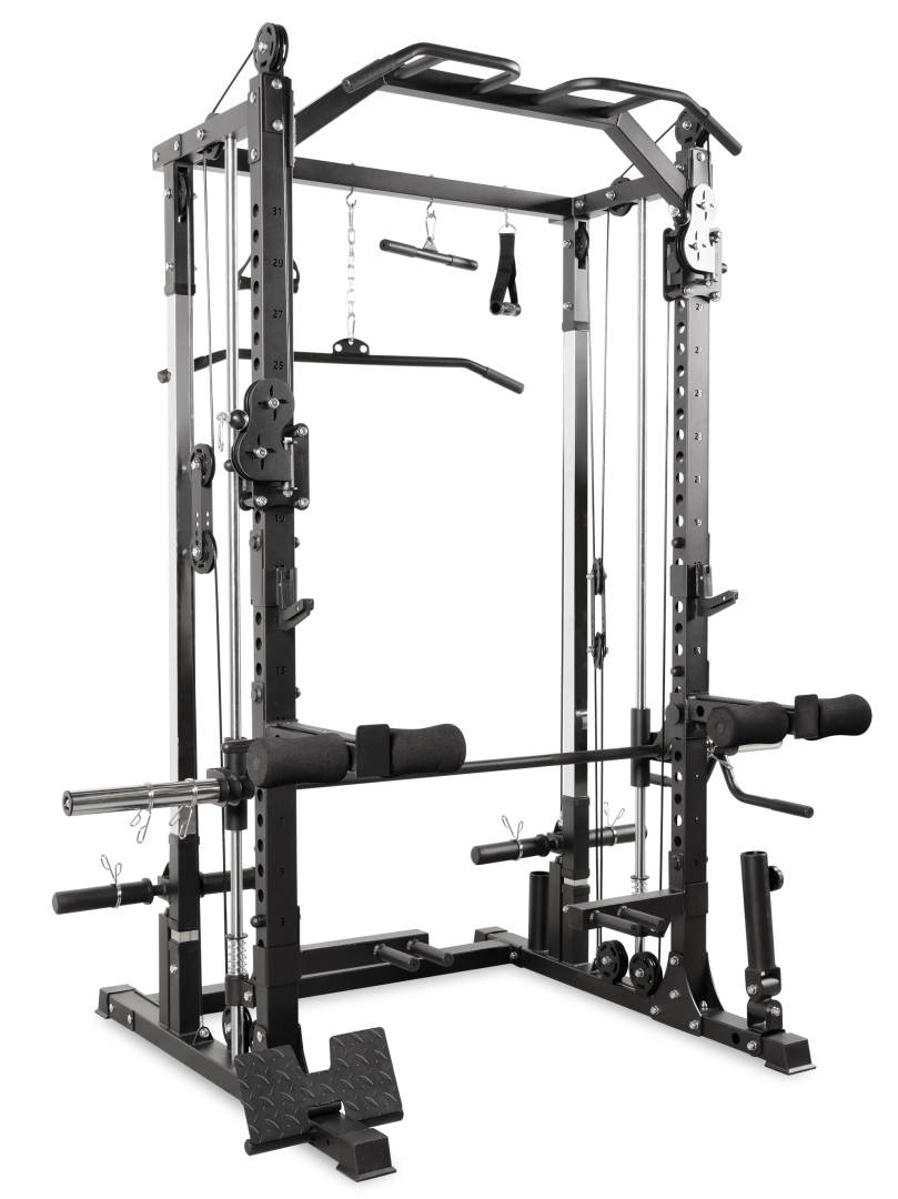 OXYGEN FITNESS TREVIS - это универсальный силовой комплекс с полноценной машиной Смита, созданный для эффективных домашних тренировок с функционалом профессионального уровня. Конструкция работает со свободными весами и обеспечивает безопасное выполнение десятков упражнений: от жима и приседаний до тяг, кроссоверных движений и тренировок корпуса.