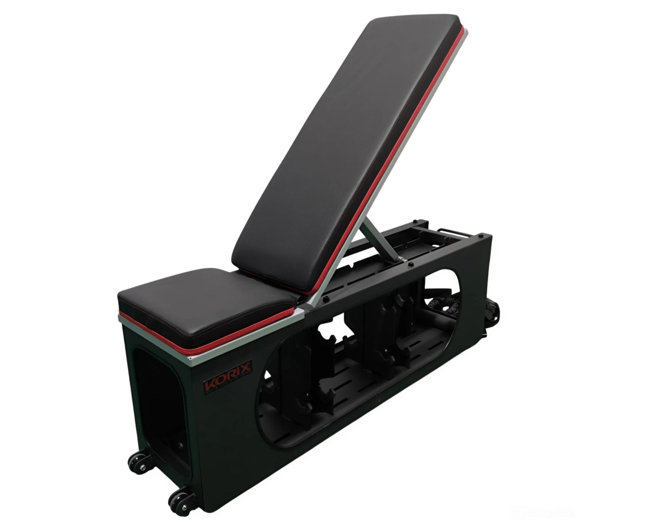 Скамья оснащена эспандерами длиной 105 см — с их помощью можно тренировать руки, плечи и спину без дополнительного оборудования. Внутри скамьи предусмотрено удобное место для хранения утяжелителей: гантели убираются прямо в корпус. Всего помещается до 8 гантелей, поэтому скамья не занимает лишнего места и отлично подходит для домашних тренировок, даже в небольшой квартире. Для лёгкого перемещения по дому скамья оснащена транспортировочными роликами, благодаря которым её удобно передвигать и убирать после тренировки.