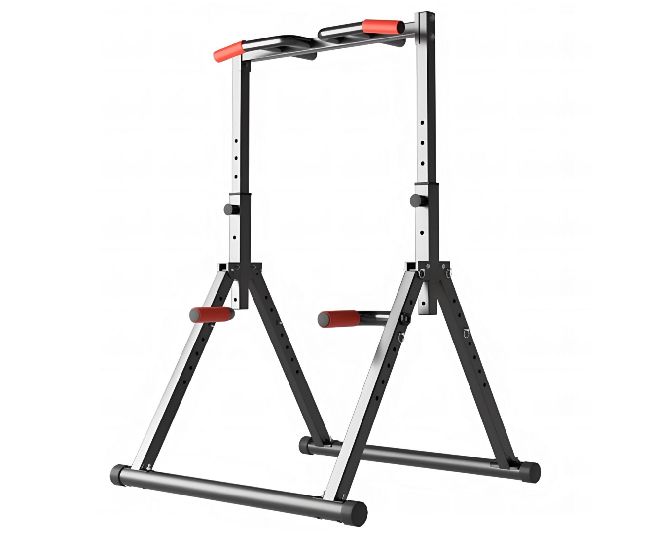 Конструкция дополнена многофункциональными рукоятками с правой и левой сторон, что позволяет варьировать хват и расширять возможности тренировок. Положение перекладины для отжиманий настраивается индивидуально, а удобный механизм регулировки обеспечивает быструю и простую смену высоты без лишних усилий.