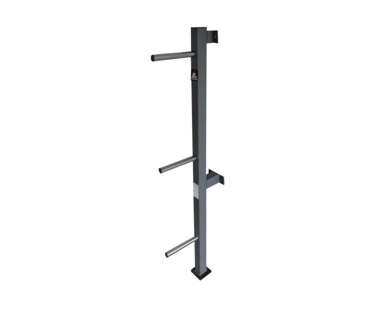 Стойка располагается на полу, с упором на стену. Для дополнительной устойчивости прикручивается болтами. Компактно размещается в углу комнаты. Рекомендуем размещать снаряды сверху вниз, в порядке увеличения массы.