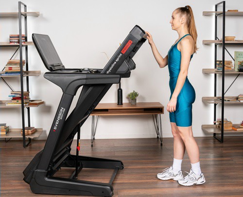 Размеры беговой дорожки в рабочем состоянии составляют 178 см в длину, 89 см в ширину и 148 см в высоту, что является хорошим показателем для домашнего использования. Инновационная двухфазная гидравлическая система Easy Drop™ позволяет плавно поднимать и опускать деку, экономя пространство.