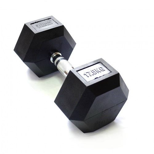 Гантель гексагональная обрезиненная с хромированной рукояткой, вес 17,5 кг. Предназначена для выполнения различных силовых упражнений, использования в качестве отягощения. Дизайн гантели, форма весов позволяет использовать пару гексагональных гантелей в качестве упоров для отжиманий. Подходят для использования дома и в залах.