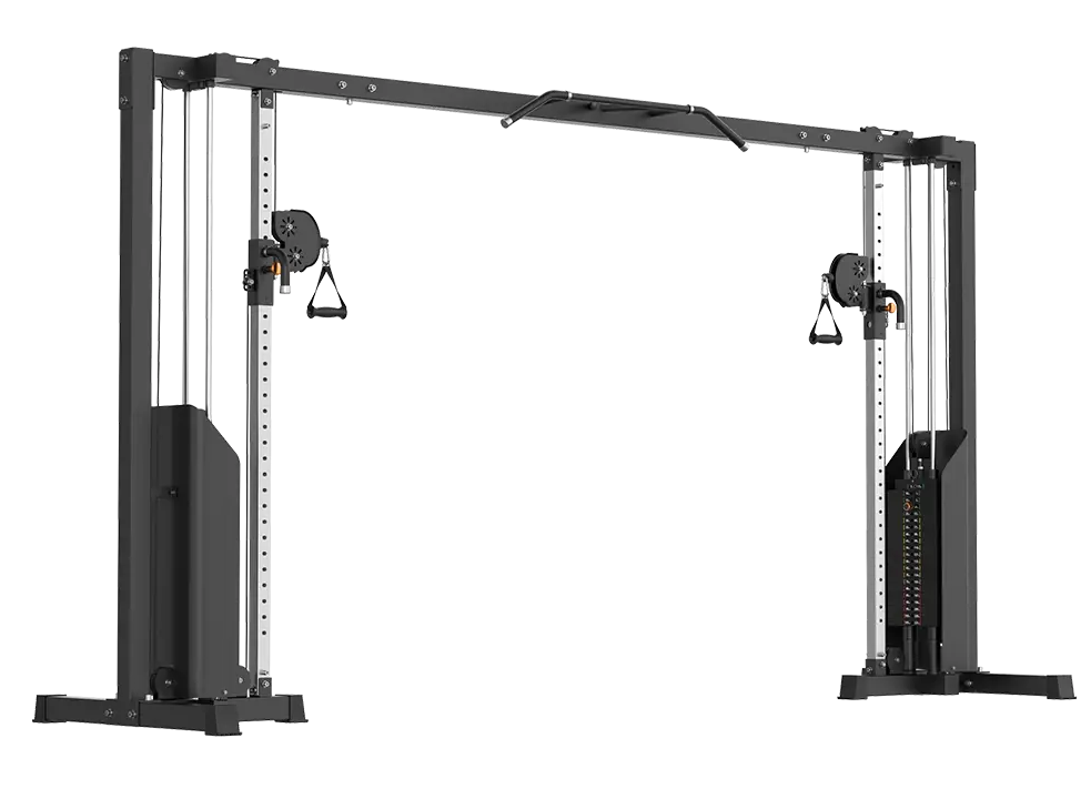 Данный кроссовер относится к моделям профессионального класса и предназначен для коммерческого использования. Функциональные упражнения, выполняемые с помощью этого тренажера, обеспечивают эффективную проработку различных мышечных групп. Двойные тяговые колонны позволяют выполнять упражнения как двумя руками, так и одной, что обеспечивает возможность прорабатывать необходимые группы мышц. Вращающиеся рукояти обеспечивают свободные и естественные движения. На верхней перекладине предусмотрен турник, рукоятки которого позволяют выполнять подтягивания Широким, нейтральным и узким хватом, что позволяет прорабатывать различные группы мышц, акцентируя на них нагрузку. Конструкция кроссовера включает 2 грузовых стека. Удобный выбор нагрузки осуществляется с помощью штифтов.