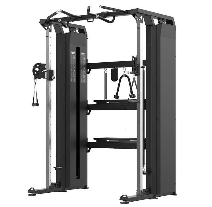 Данный кроссовер относится к моделям профессионального класса и предназначен для коммерческого использования. Функциональные упражнения, выполняемые с помощью этого тренажера, обеспечивают эффективную проработку различных мышечных групп. Двойные тяговые колонны позволяют выполнять упражнения как двумя руками, так и одной, что обеспечивает возможность прорабатывать необходимые группы мышц. Вращающиеся рукояти обеспечивают свободные и естественные движения. На верхней перекладине предусмотрен турник, рукоятки которого позволяют выполнять подтягивания Широким, нейтральным и узким хватом, что позволяет прорабатывать различные группы мышц, акцентируя на них нагрузку. Конструкция кроссовера включает 2 грузовых стека. Удобный выбор нагрузки осуществляется с помощью штифтов.