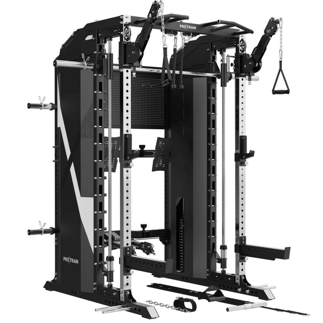 Сочетает в себе: машину Смита, кроссовер, стойки для приседаний и жимов, силовую раму, функциональный тренажер и турник. Есть возможность приобретения дополнительных опций (скамья для жима, скамья Скотта, сгибание и разгибание ног, упоры для плеч).
