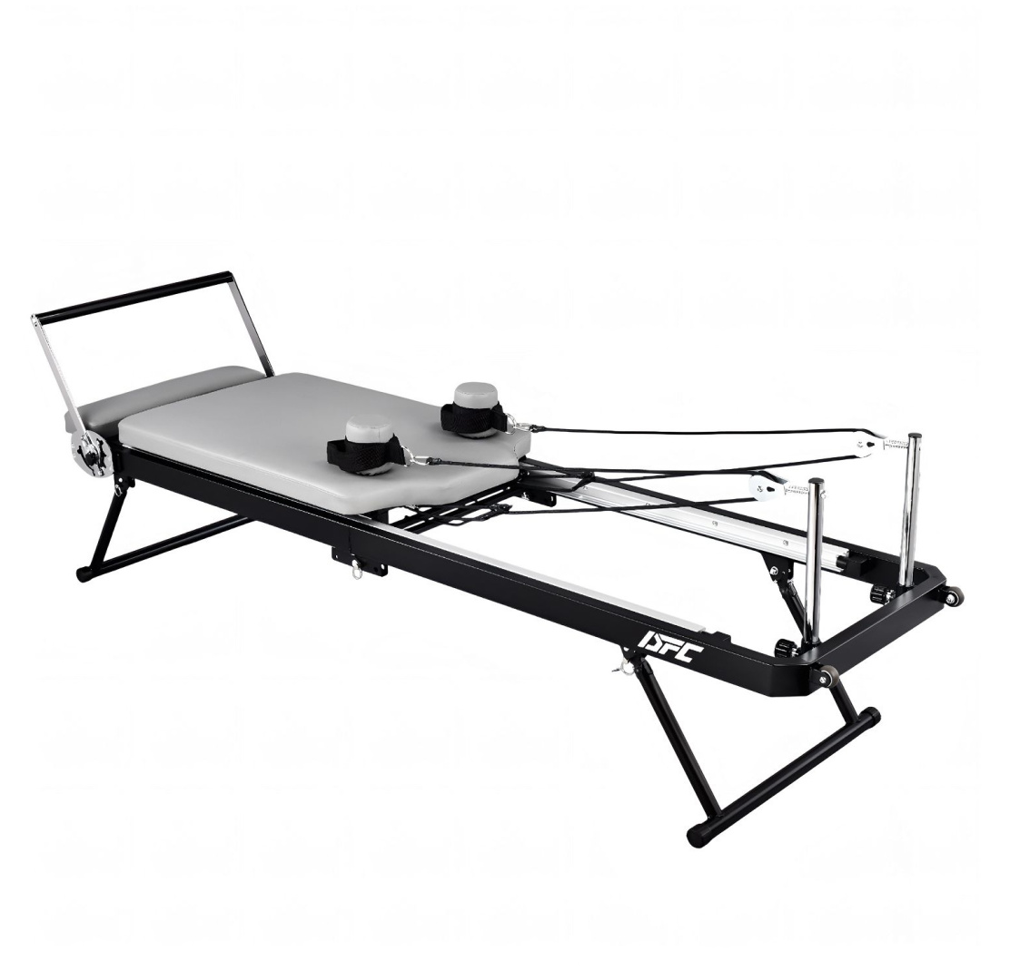 Тренажёр выполнен на прочной и устойчивой стальной раме, обеспечивающей надёжность и стабильность во время тренировок. Конструкция рассчитана на максимальный вес пользователя до 125 кг и подходит для людей с ростом от 150 до 190 см, что делает реформер универсальным решением для домашнего использования всей семьёй.