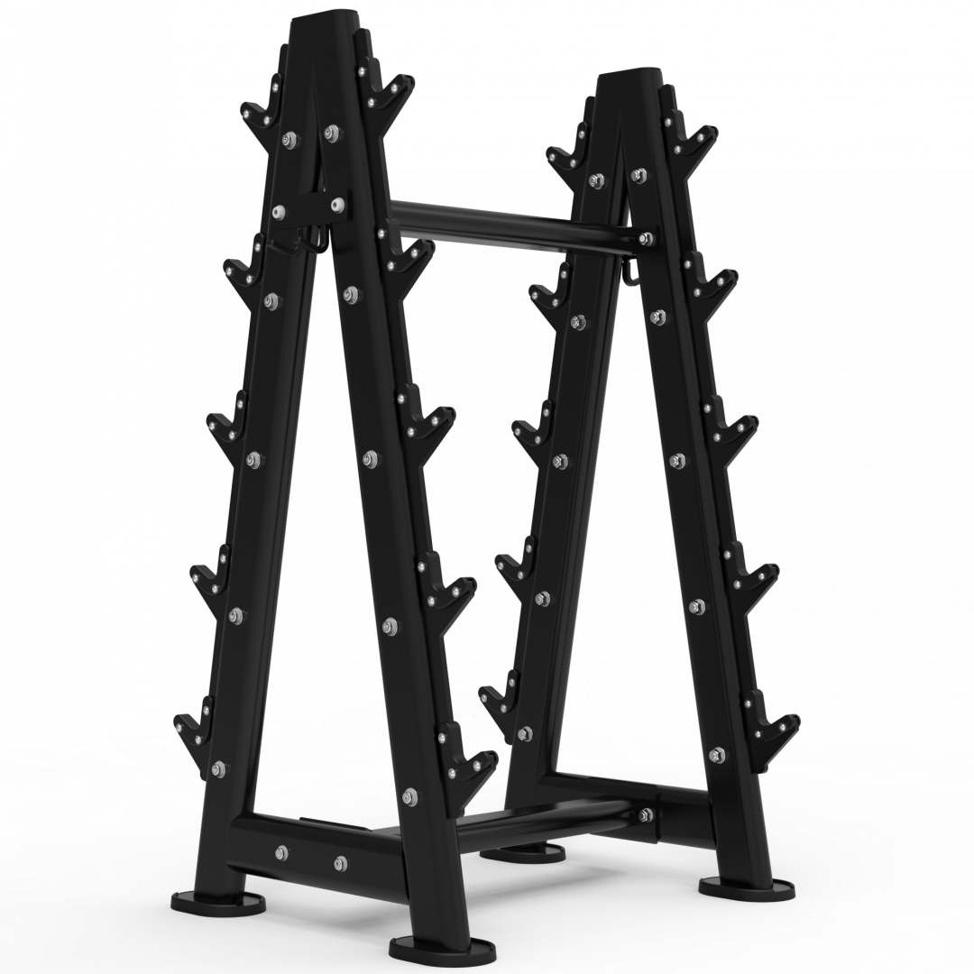 Надежная и устойчивая стойка предназначена для хранения 10 фиксированных штанг.
